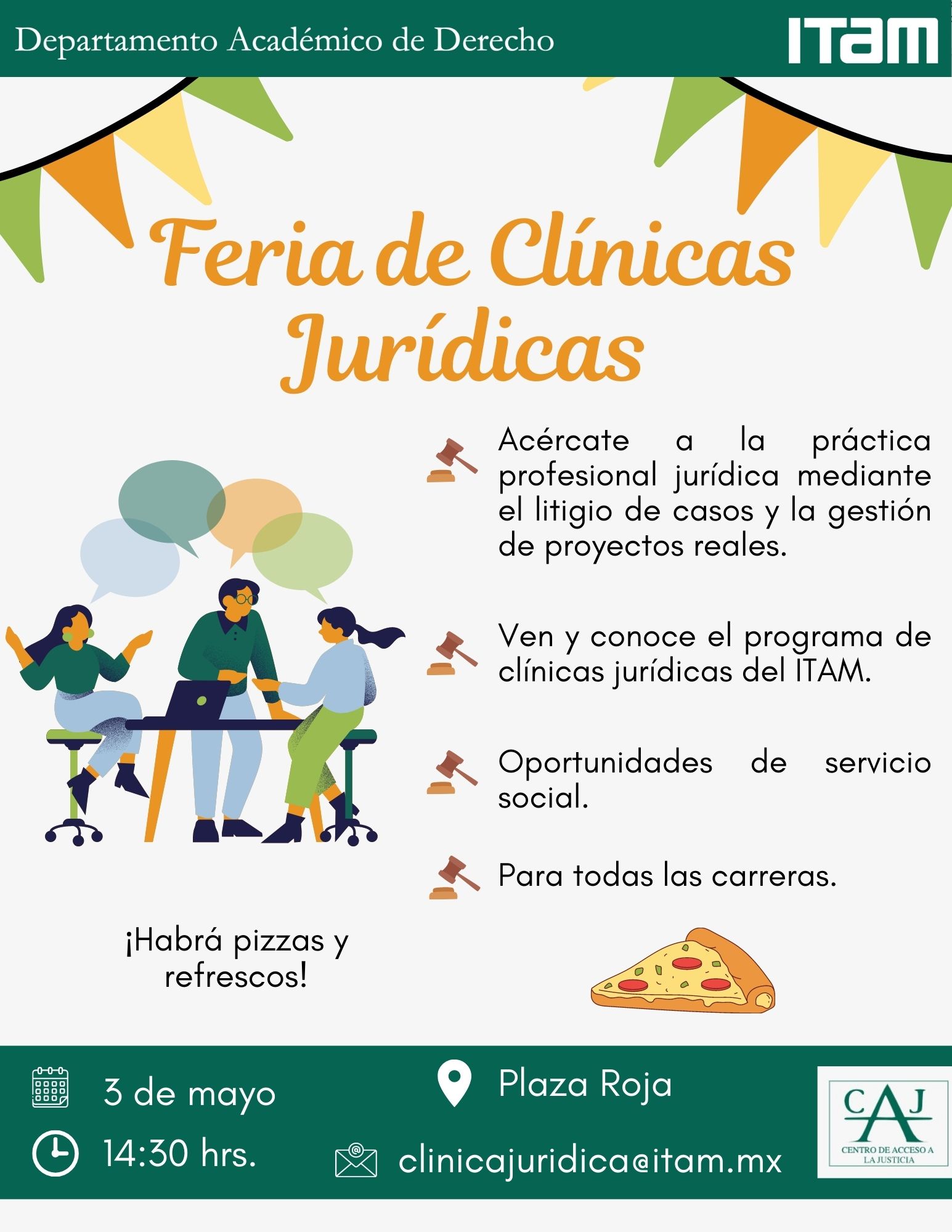El Departamento Académico de Derecho invita a la comunidad del ITAM a la Feria de Clínicas Jurídicas Primavera 2023. Te esperamos el miércoles 3 de mayo de 14.30 a 16:00 hrs. en Plaza Roja.