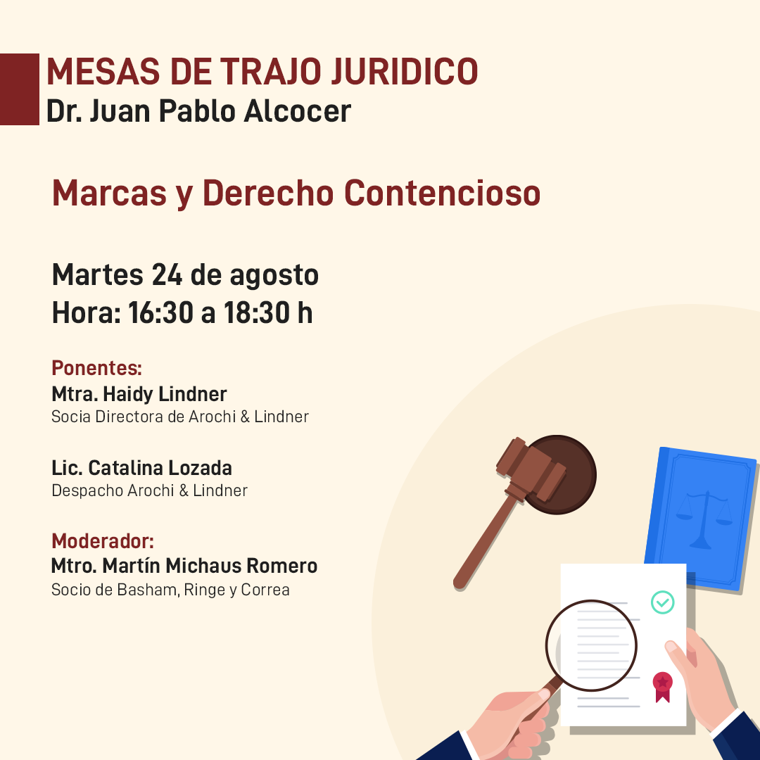 El evento se llevará a cabo vía zoom y contará con la participación de la Mtra. Haidy Lindner, Socia Directora de Arochi & Lindner y con la Lic. Catalina Lozada, del Despacho Arochi & Lindner. El moderador será el Mtro. Martín Michaus Romero, Socio de Basham, Ringe y Correa.