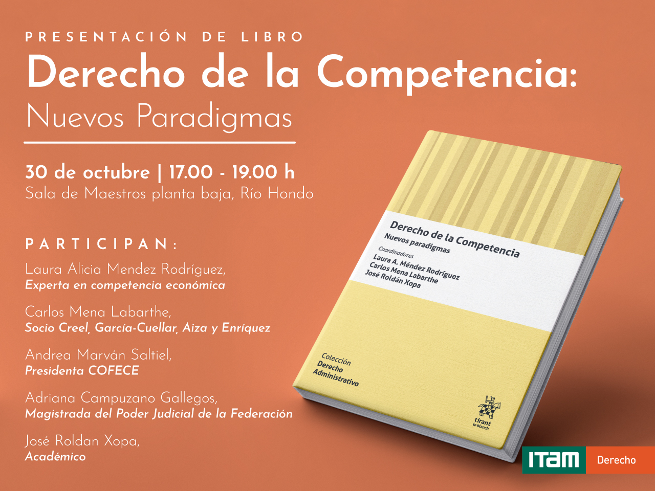 El Departamento Académico de Derecho se complace en invitarlos a la presentanción del libro "Derecho de la Competencia: Nuevos Paradigmas” que se llevará a cabo el lunes 30 de octubre del 2023 en la Sala de Maestros planta baja del campus Río Hondo a las 17:00 hrs.