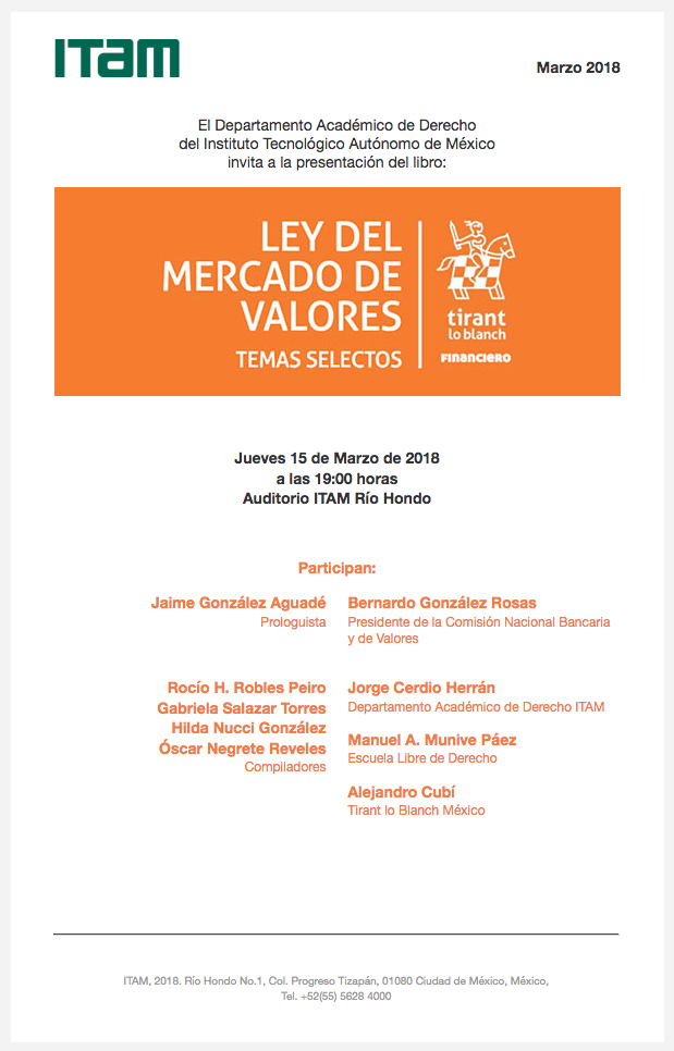 El Departamento Académico de Derecho del Instituto Tecnológico Autónomo de México invita a la presentación del libro: