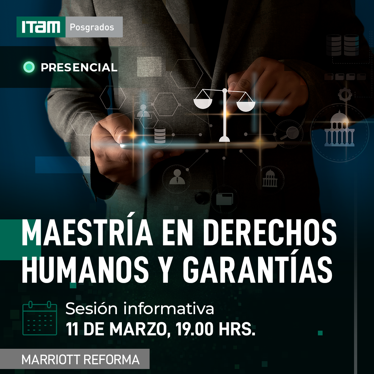 Asiste a la sesión informativa en línea este lunes 11 de marzo a las 19:00 h en donde conocerás todas las herramientas que obtendrás al cursar una maestría de este nivel. El Dr. Raymundo Gama, director del programa, compartirá los proyectos en los cuales han participado estudiantes y egresados durante su Maestría en Derechos Humanos y Garantías en el ITAM.